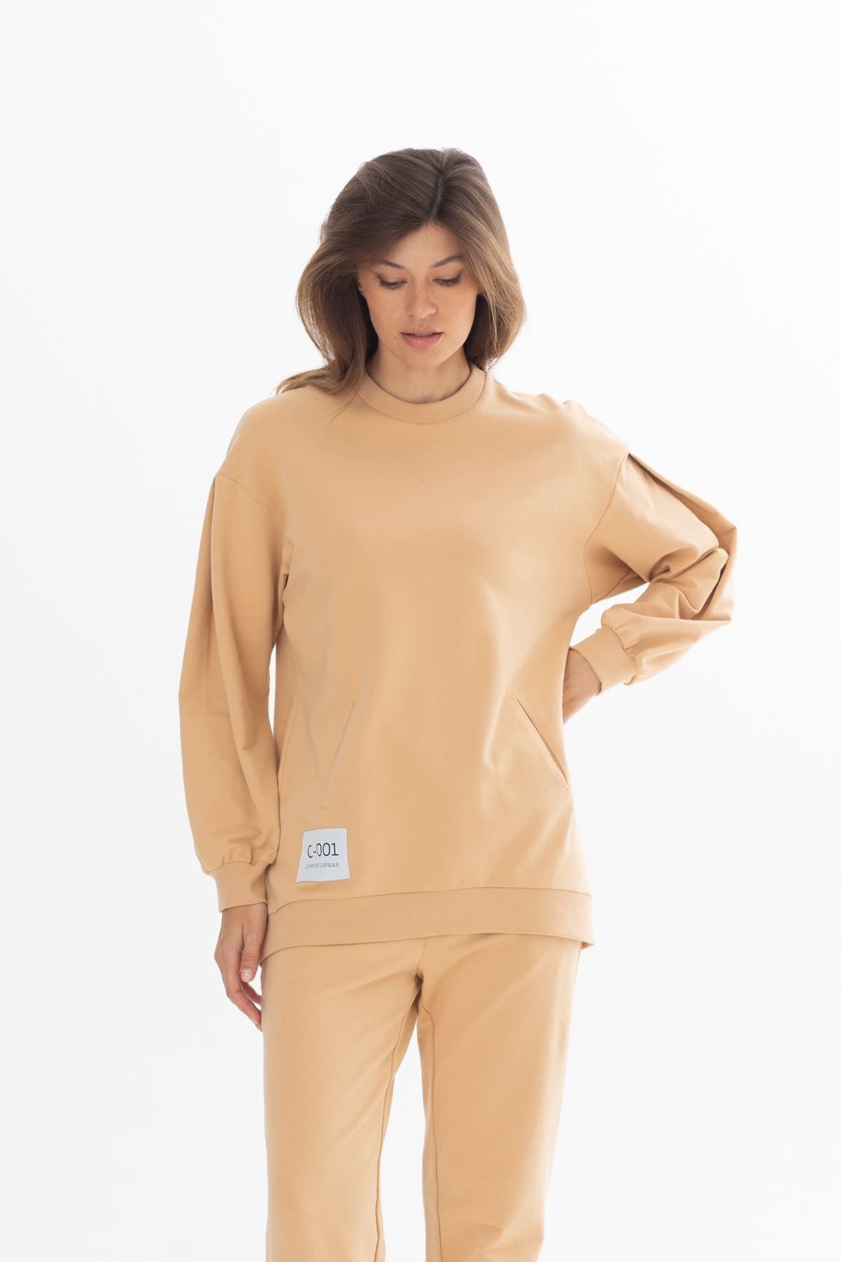 Толстовка женская удлинённая пшеничный (30419-4)