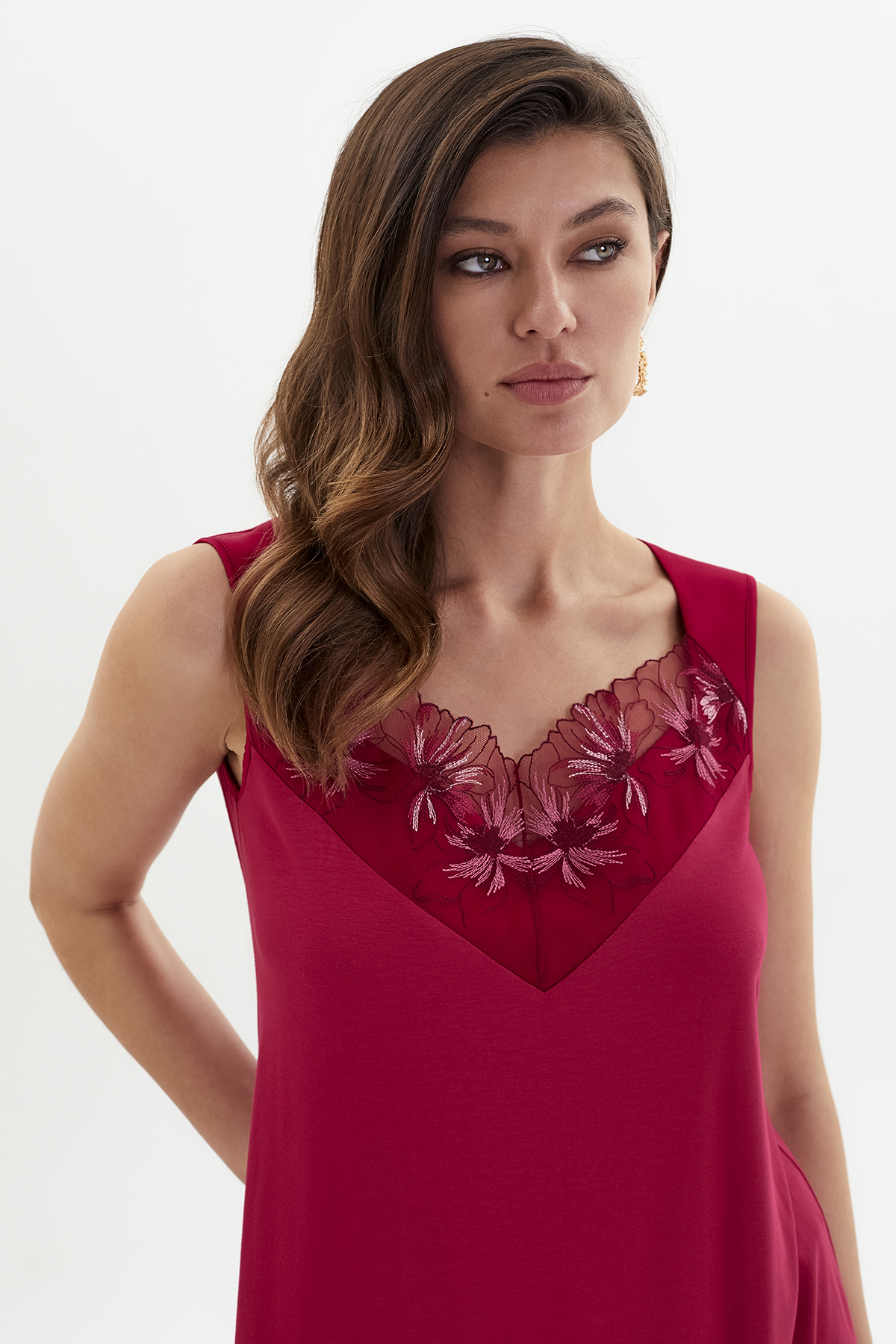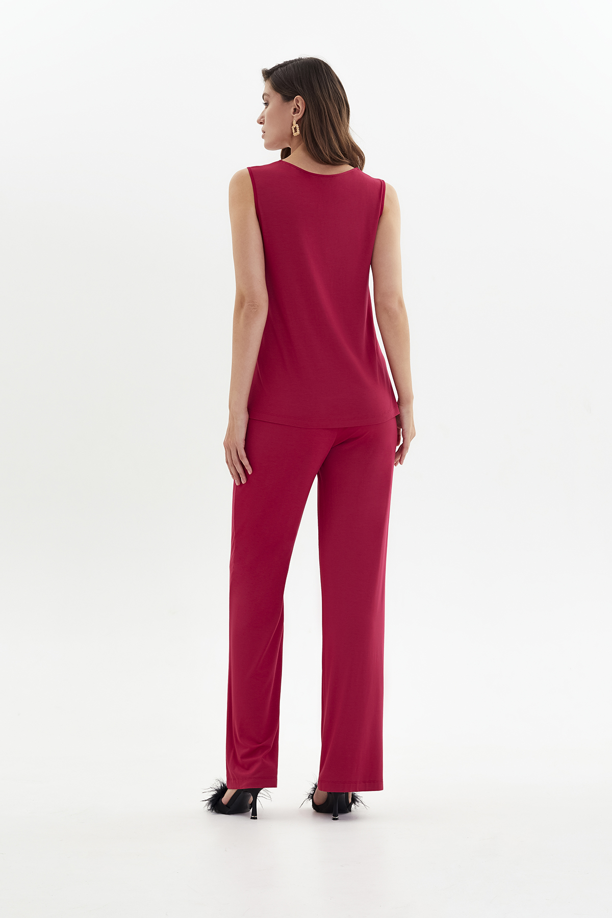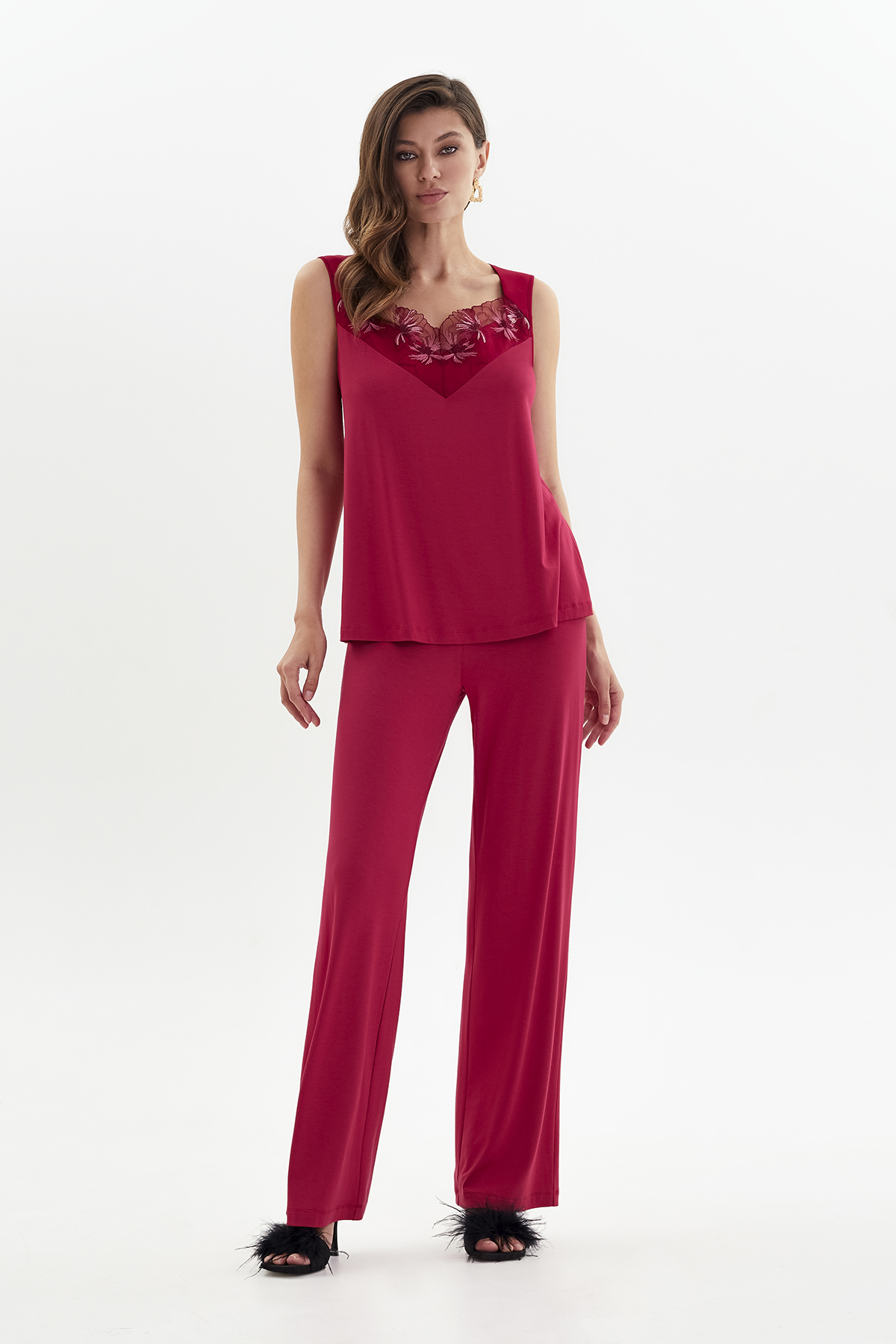 Пижама с брюками из вискозы с кружевом вишневый (52046-2)