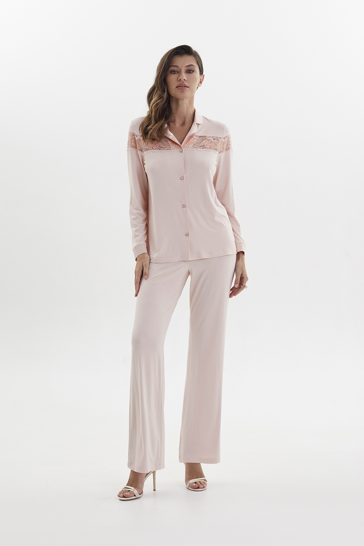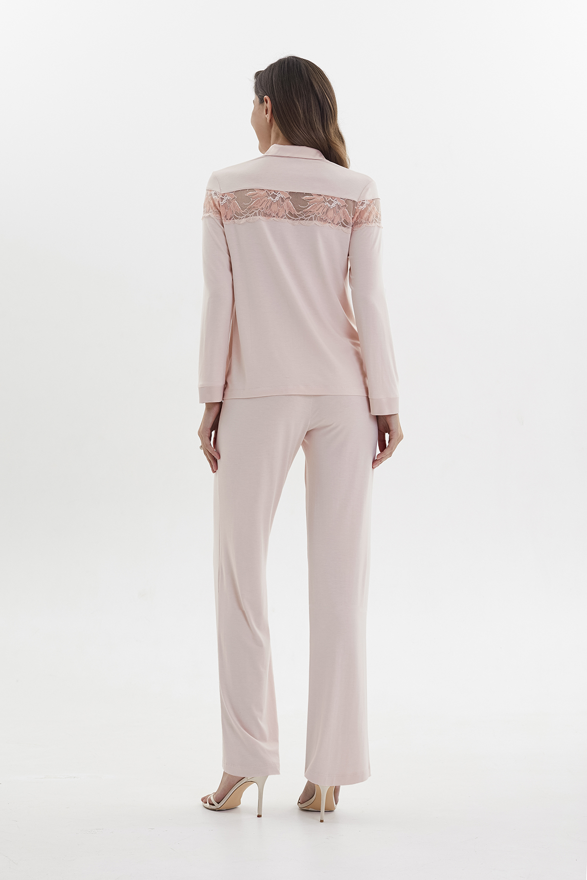 Пижама с брюками из вискозы пудренный (52019-4)