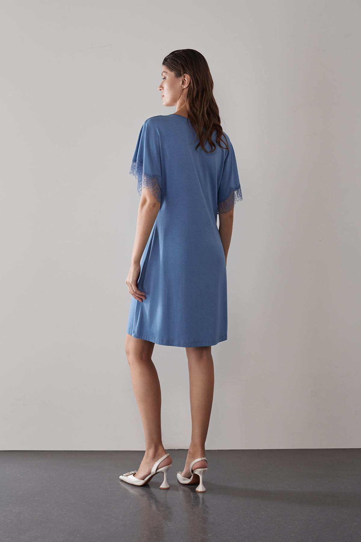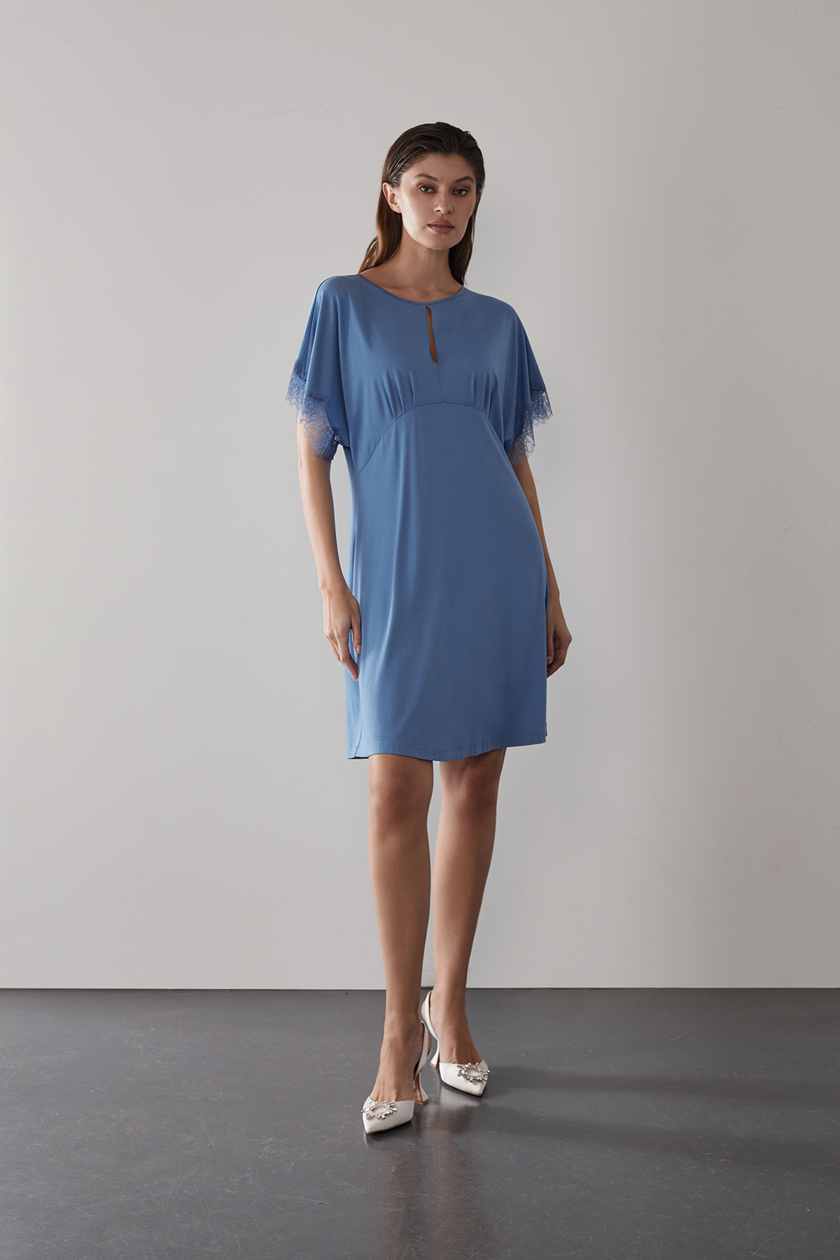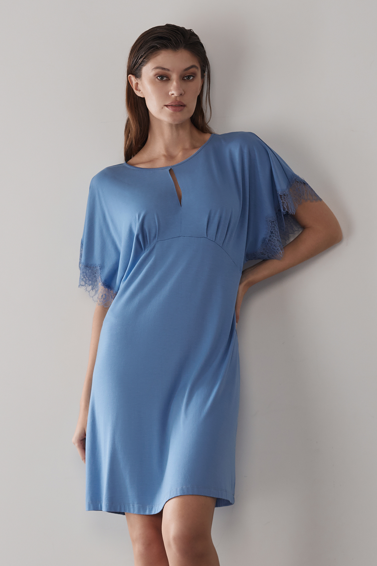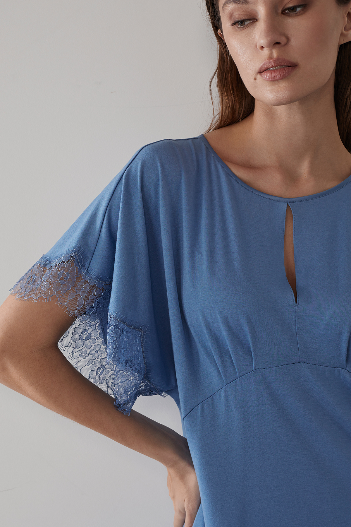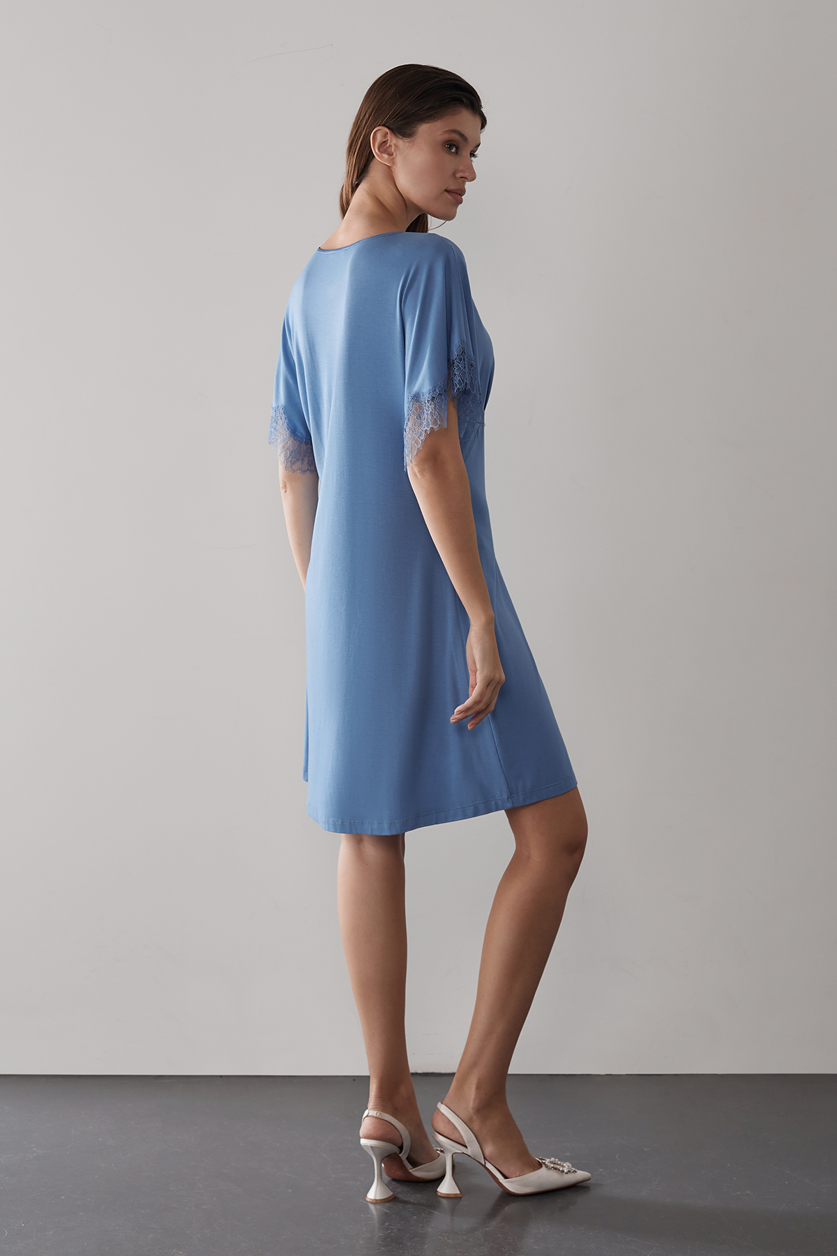 Сорочка женская из вискозы с кружевом небесно-голубой (52030-1)
