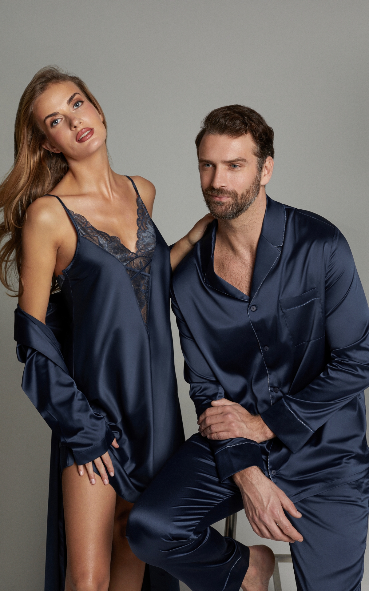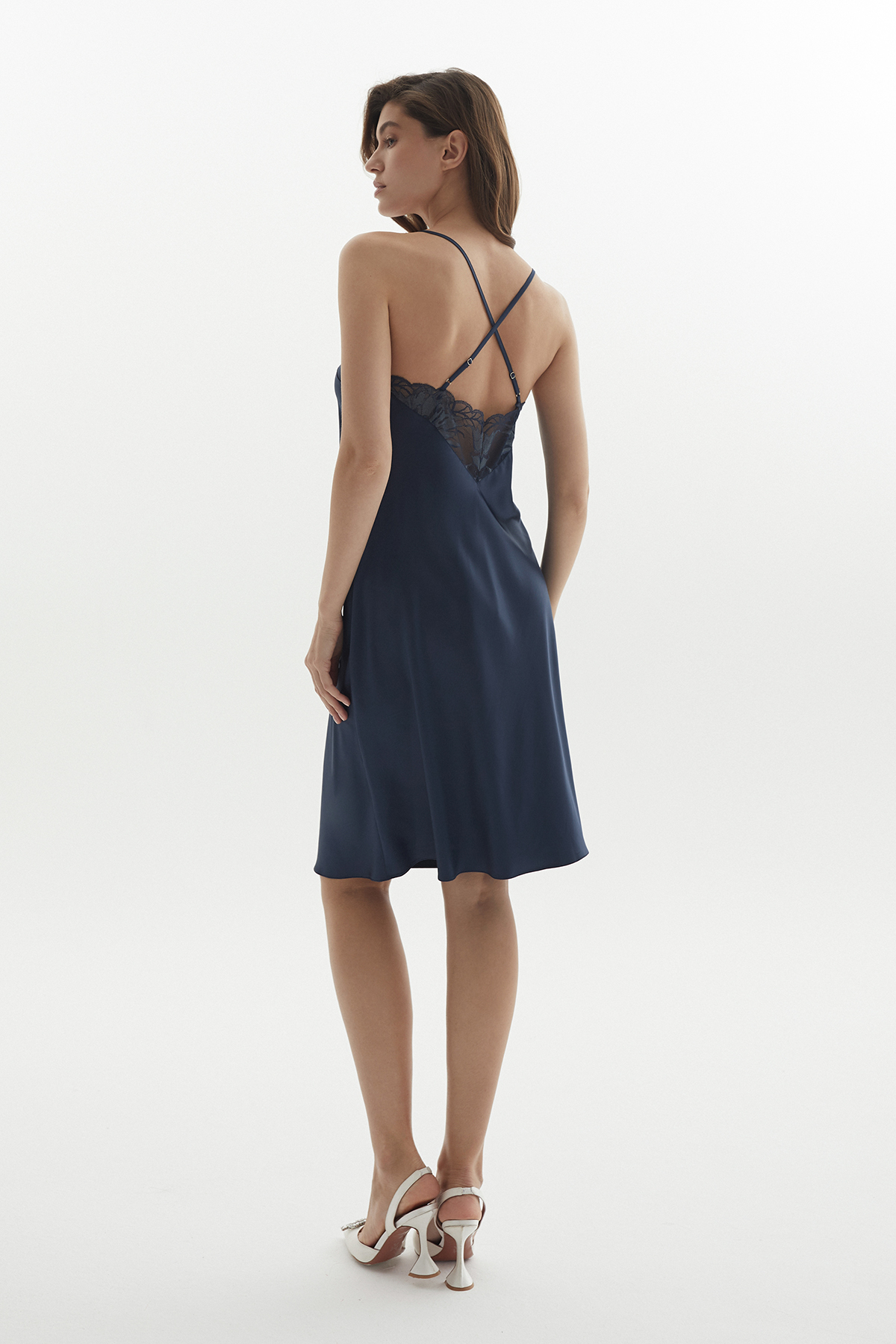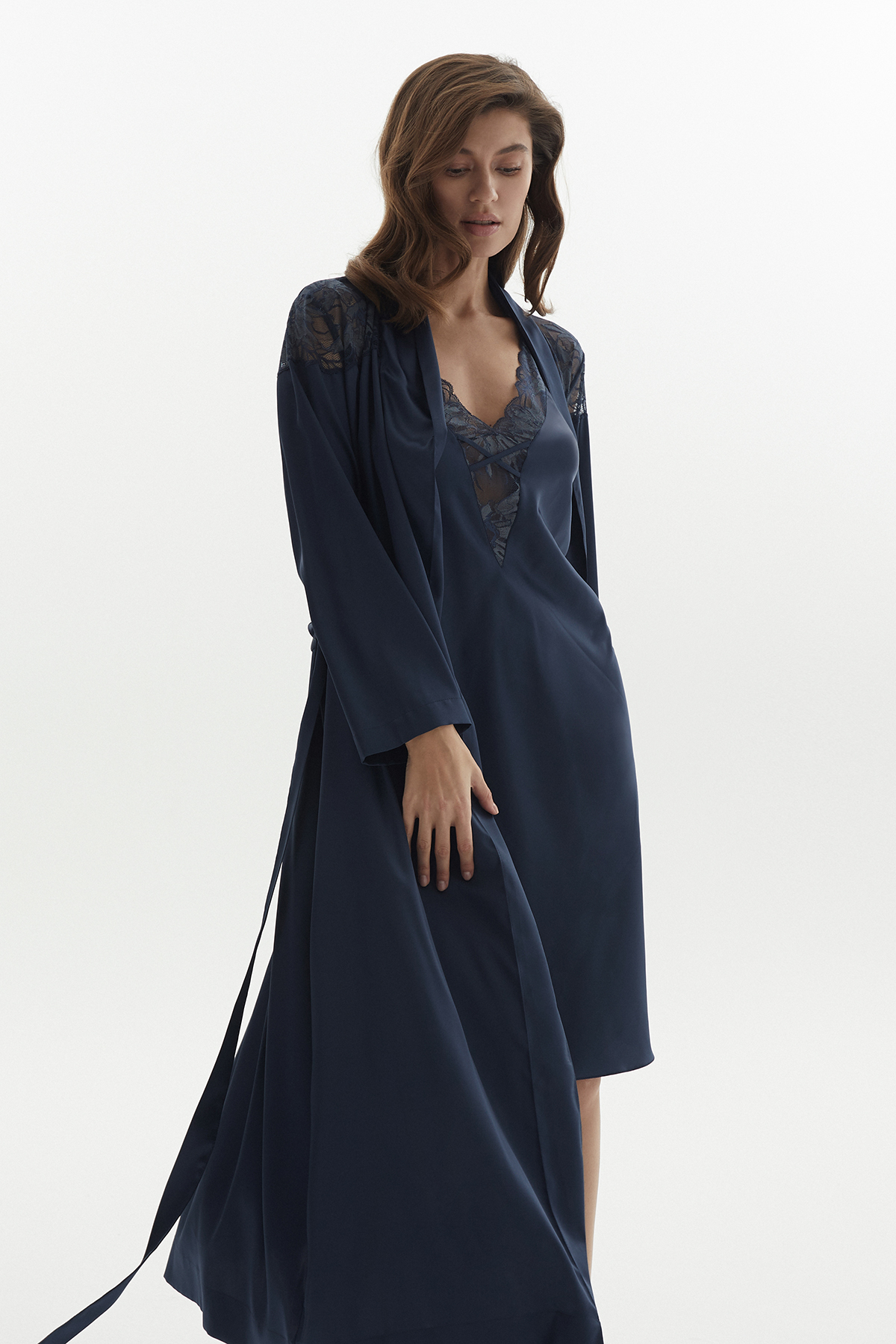 Сорочка женская с кружевом полуночный синий (60555-1)