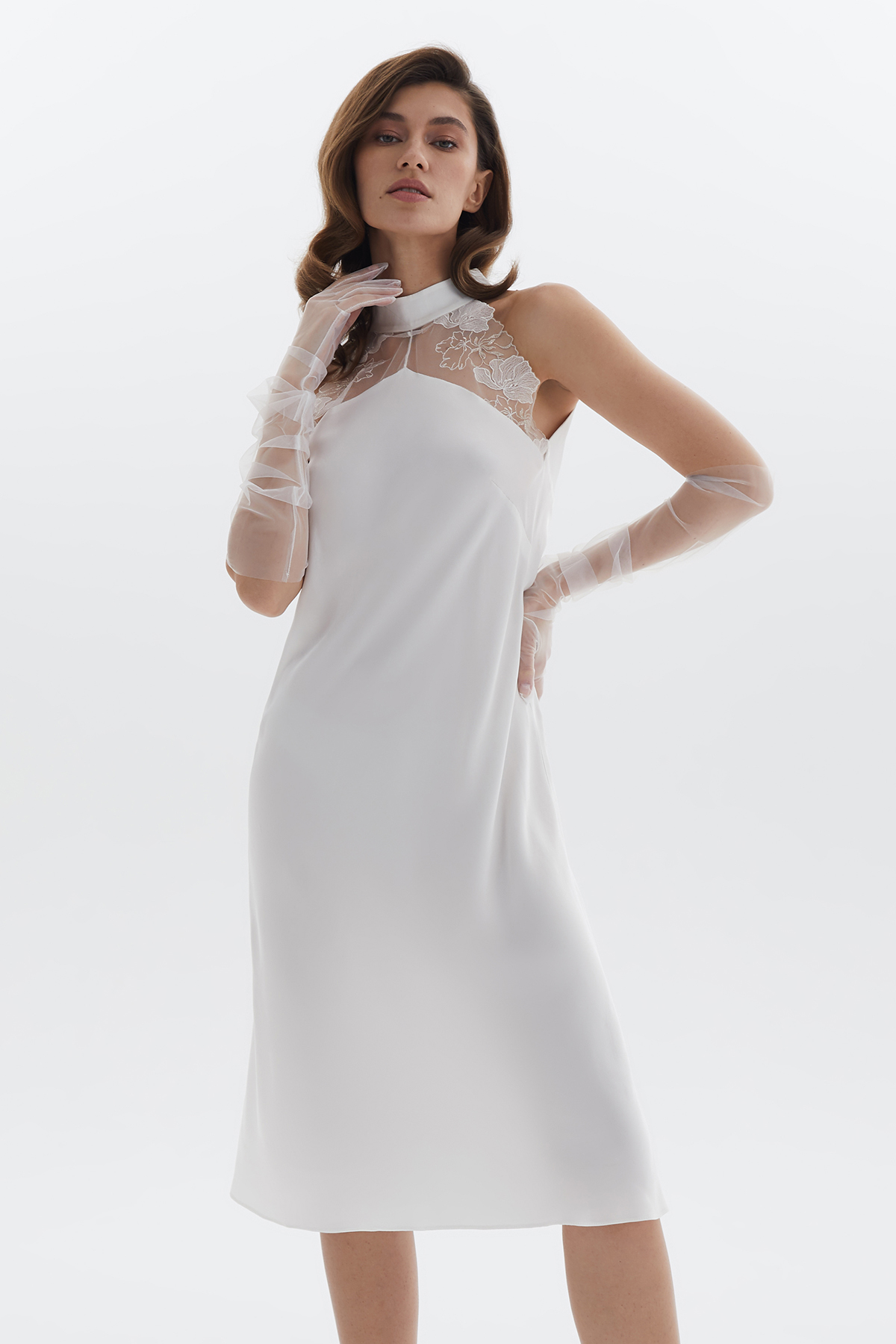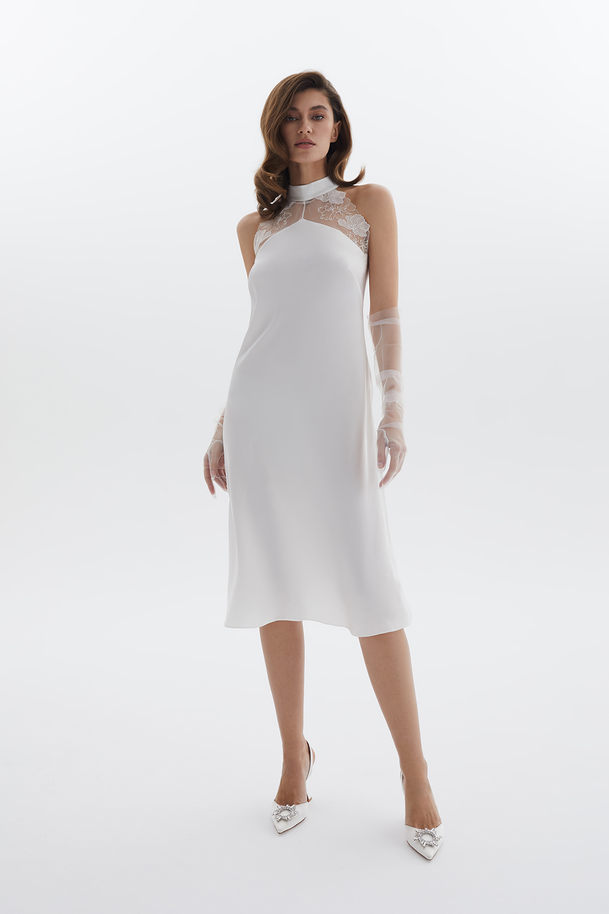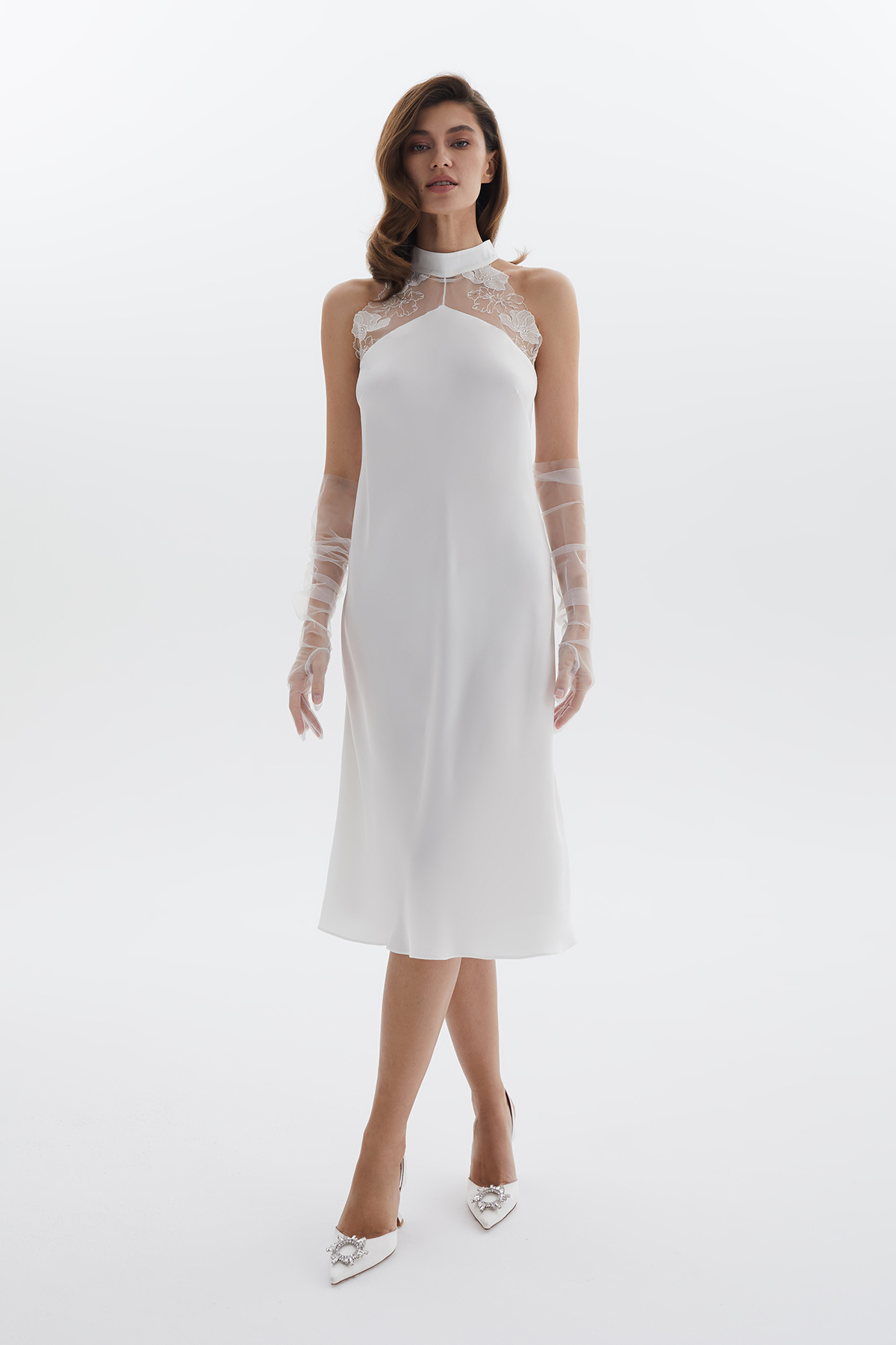 Сорочка женская из вискозы с кружевом белая лилия (61799-1)