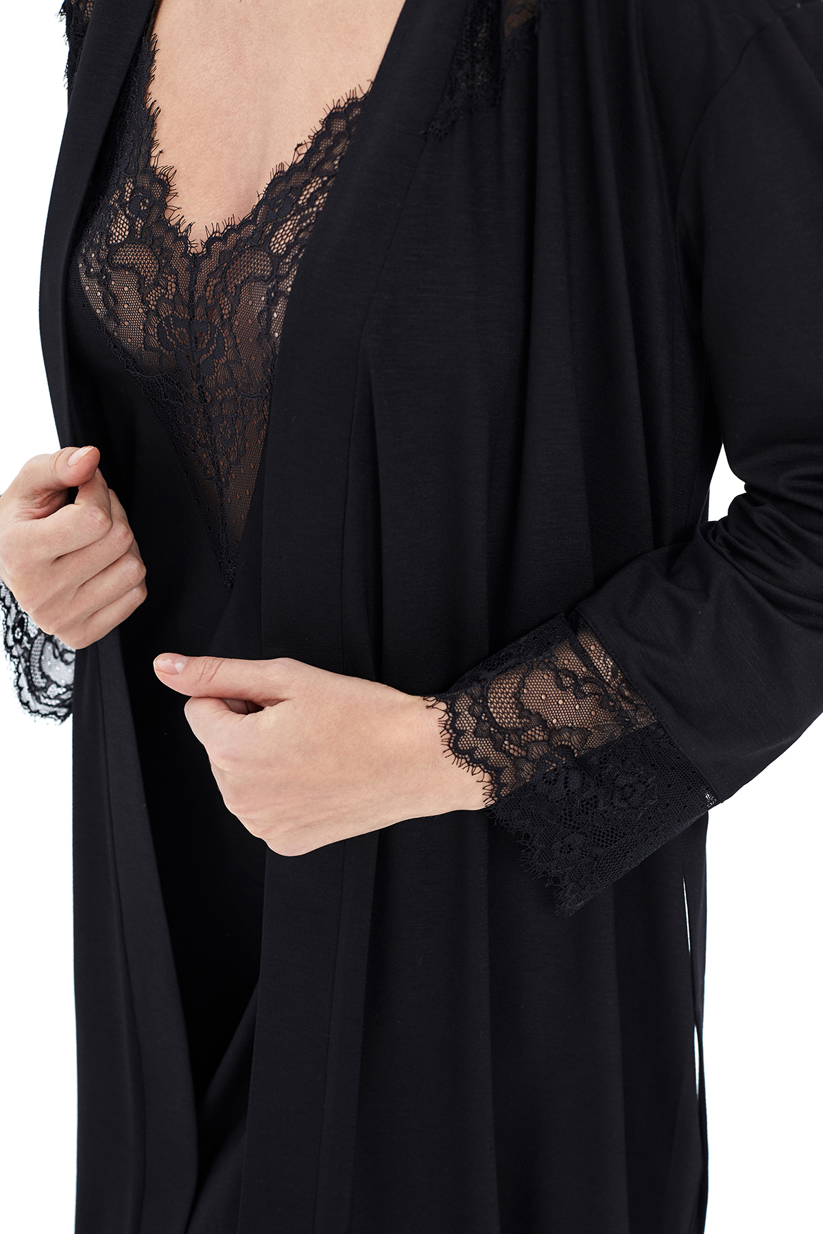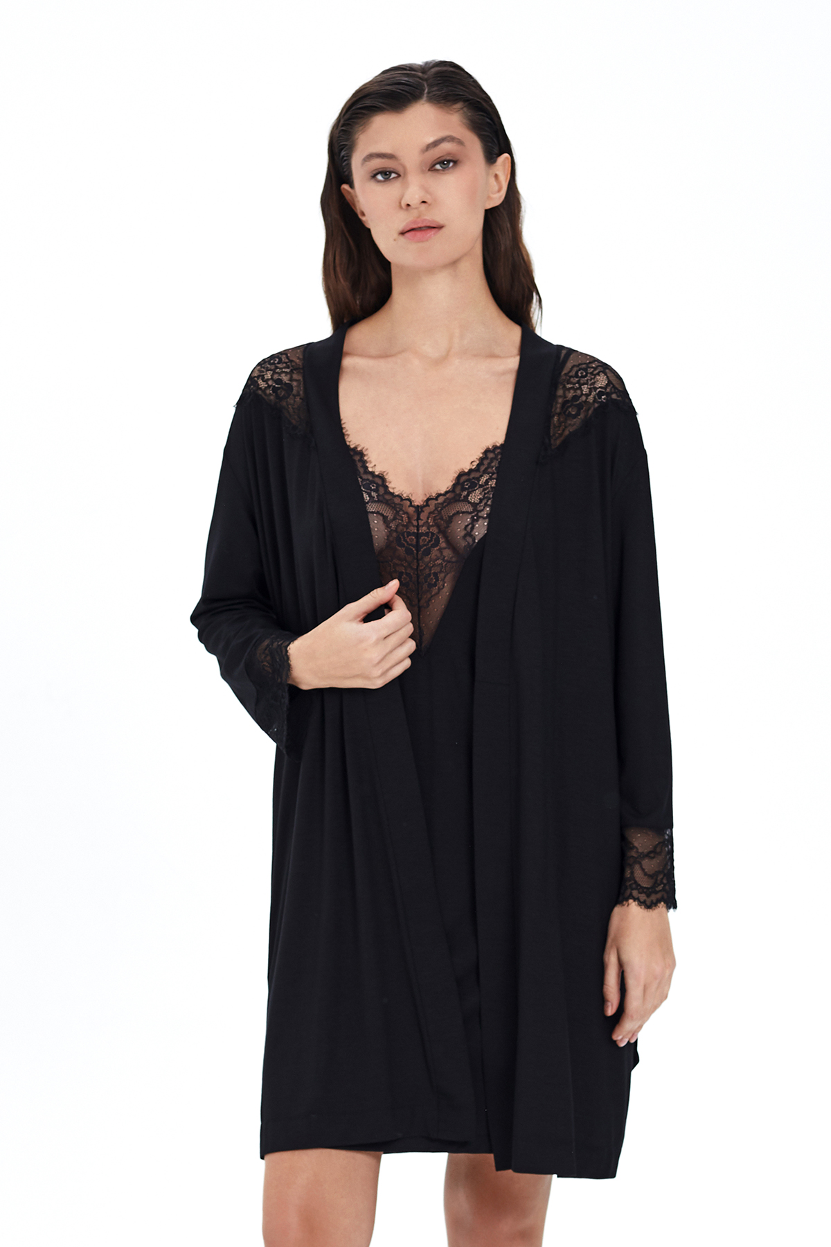 Сорочка из вискозы с кружевом чёрный (51558-2)