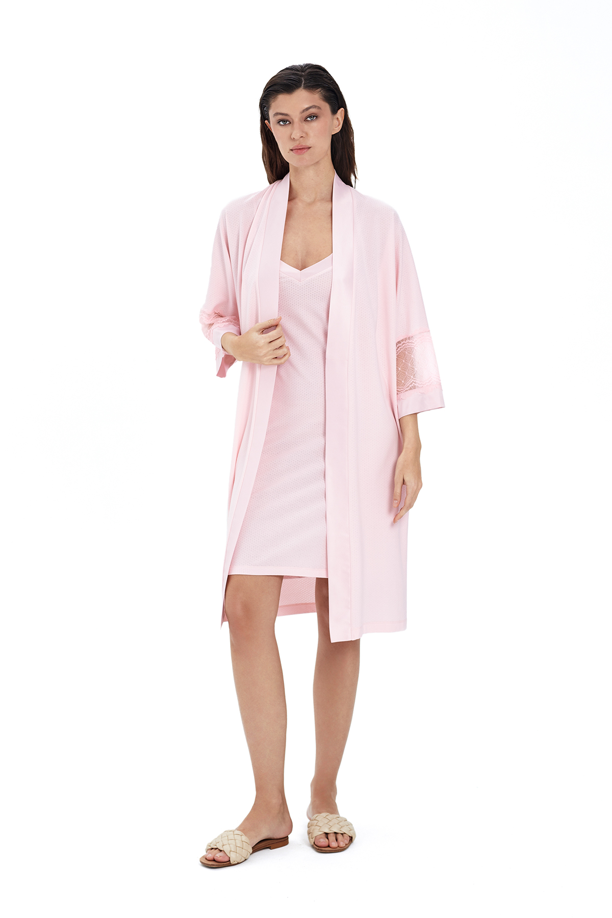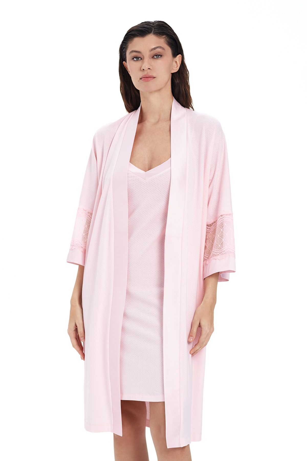 Сорочка женская с кружевом светло-розовый (52109)