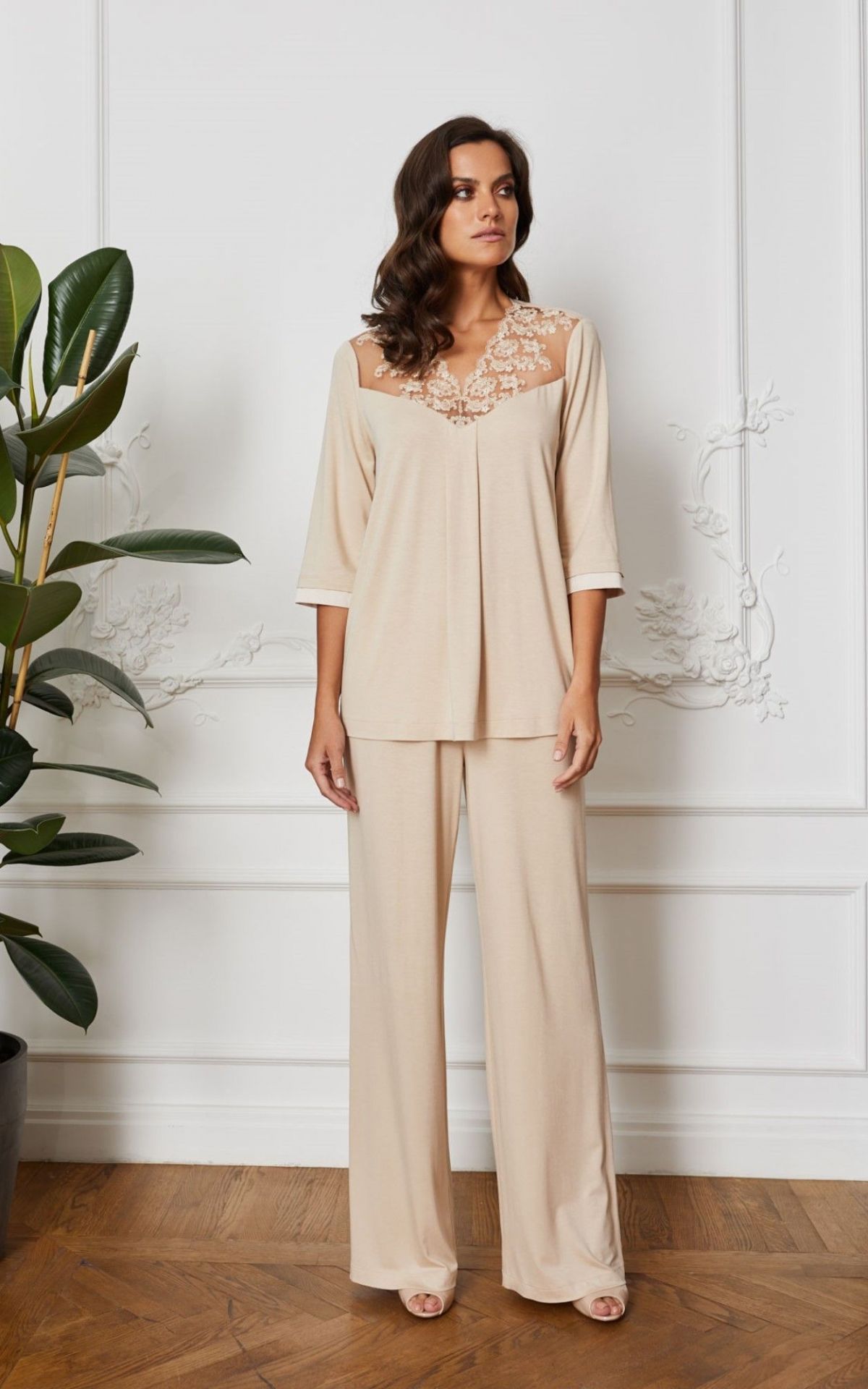 Топ пижамный с кружевом бежевый (51840-1)
