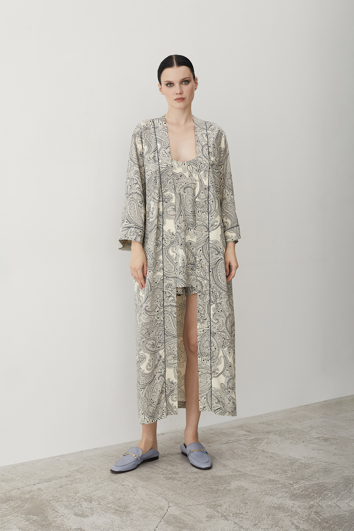 Пижама с шортами из вискозы бежево-синий (56442)