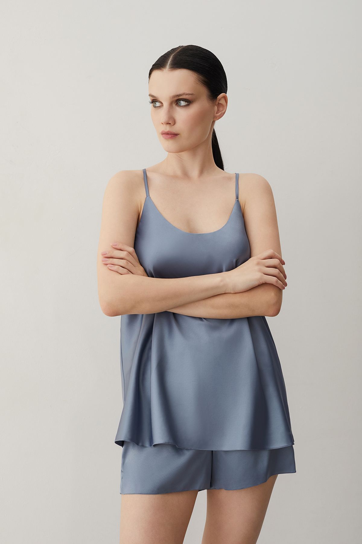 Пижама с шортами женская голубой стальной (61888-5)