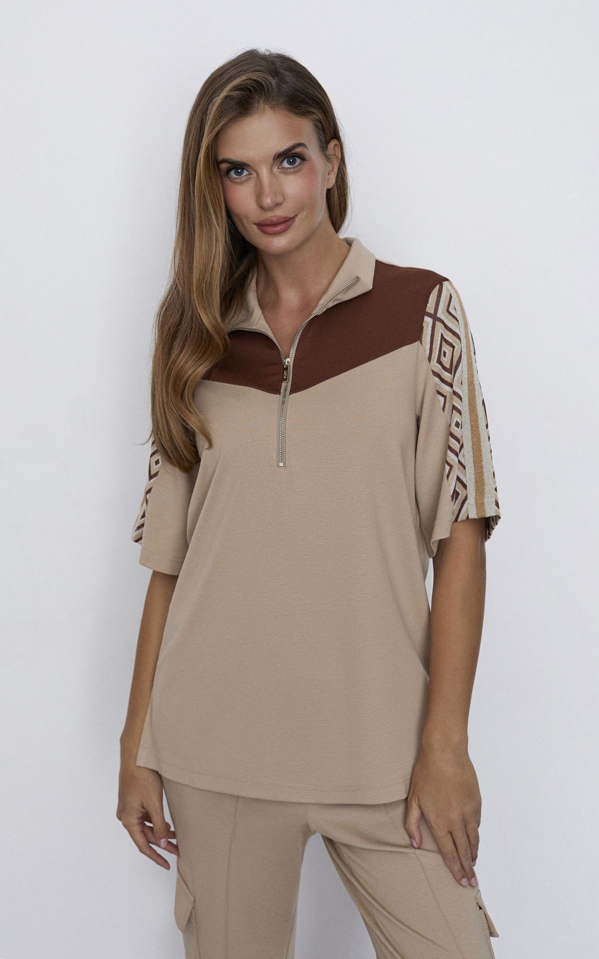 - Состав вискоза 85%, полиэстер 15%; вставка жаккард -вискоза 70%, полиэстер 28%, спандекс 2%